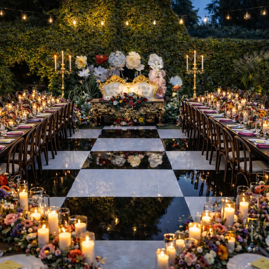 El gran secreto de una boda maximalista está en el diseño profesional. Sin una visión clara, el maximalismo puede convertirse en caos. Con una dirección creativa cuidada, se transforma en lujo, elegancia y armonía.
